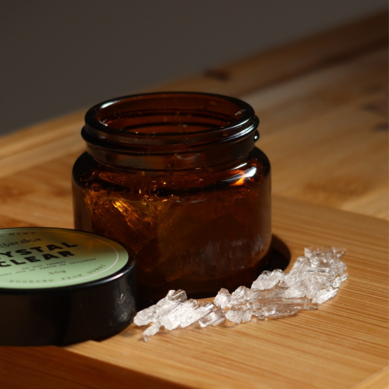 When used on the skin, Crystal Clear provides a cooling sensation, also calming irritation, itching and burning. It also eliminates blackheads and whiteheads. It diminishes the appearance of age spots.